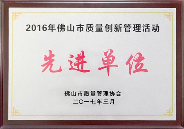 我司被評為“2016年佛山市質(zhì)量創(chuàng)新管理活動先進(jìn)單位”